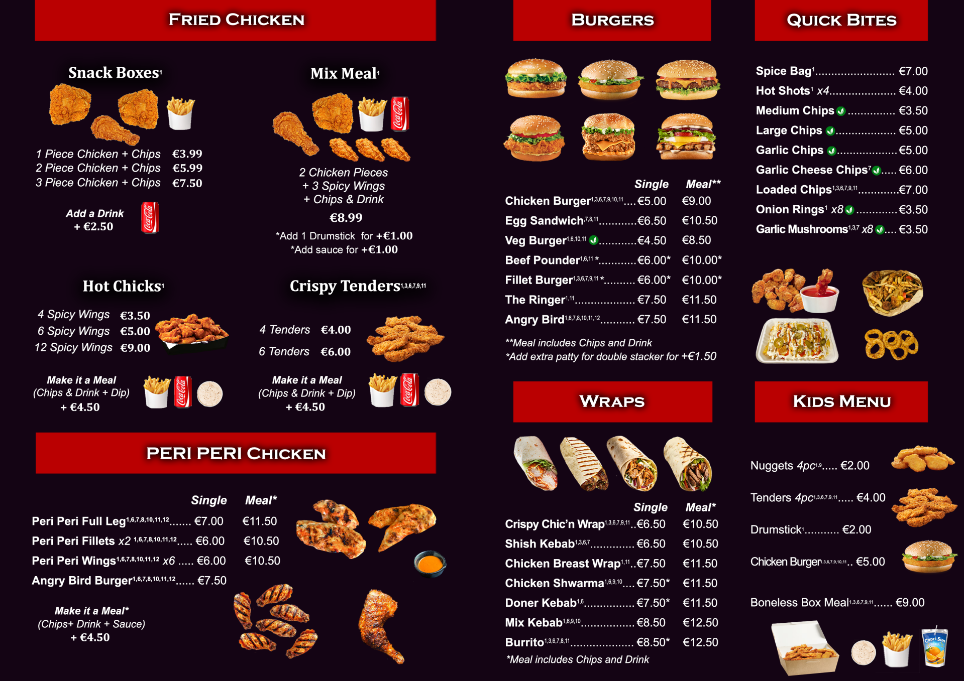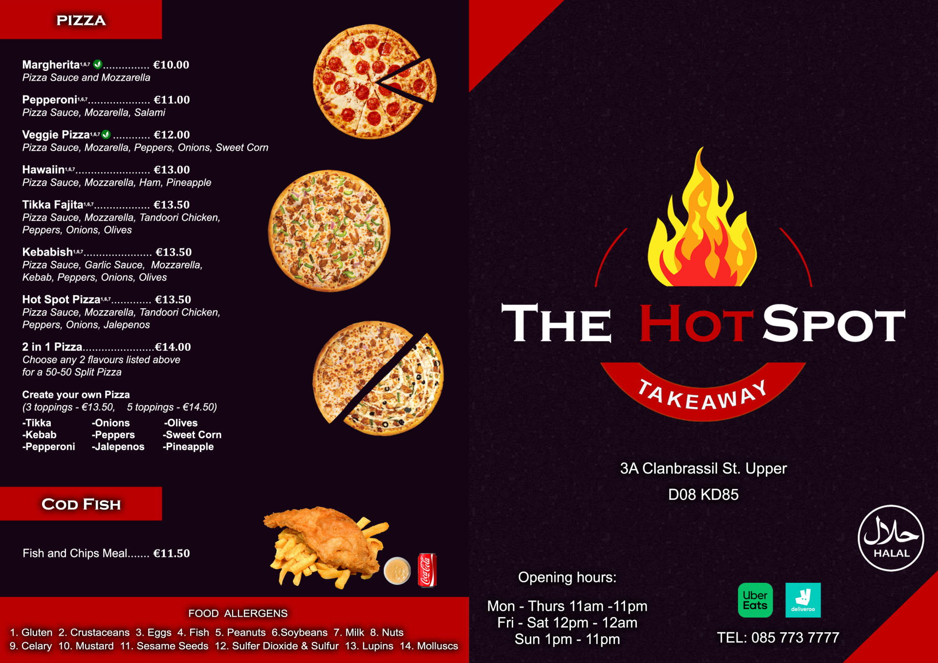At The Hot Spot, we're all about slinging the best fast food in Dublin! Our menu is packed with delicious options, from fried chicken, peri peri chicken, to juicy burgers, tasty wraps, and flavourful kebabs. We've also got pizzas and classic fish and chips to satisfy all your cravings.